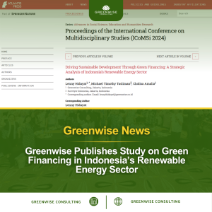 Greenwise Consulting is proud to share that our latest research paper, “Driving Sustainable Development Through Green Financing: A Strategic Analysis of Indonesia’s Renewable Energy Sector”,